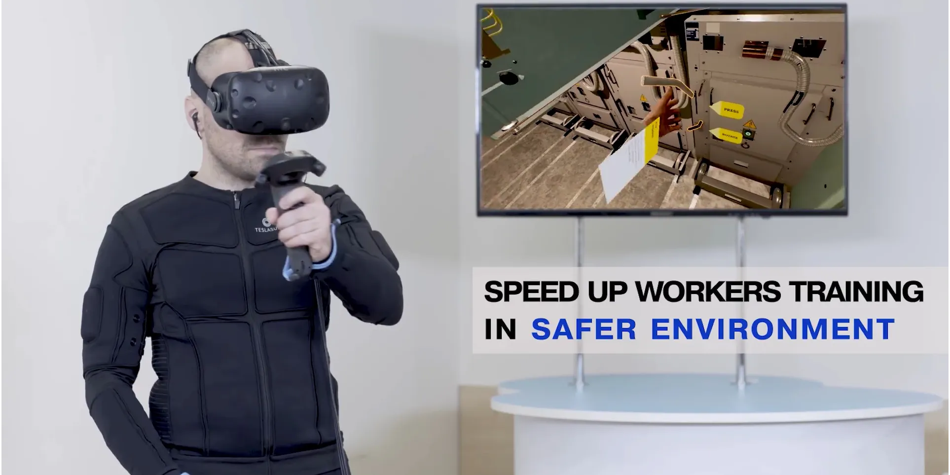 Спецодяг для навчання енергетиків та підвищення рівня безпеки праці. Костюм оснащений спеціальними сенсорами, він передає тактильні і рухові відчуття, різні температурні режими, імітує вібрації. У поєднанні з окулярами віртуальної реальності дозволяє створювати відчуття повної присутності – наприклад, в силовій установці ТЕС.