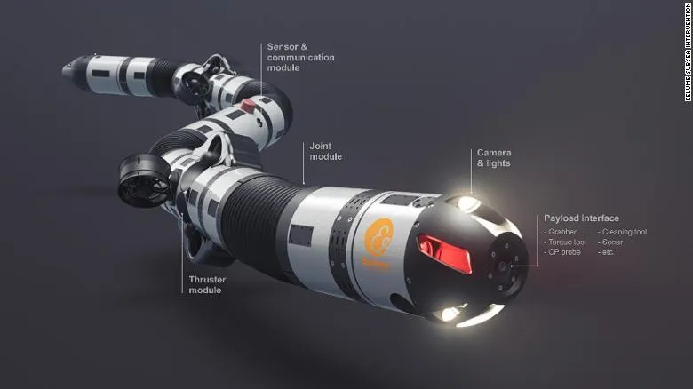 Длина работа Eelume составляет 6 метров. Он оснащен высококачественными камерами и сенсорами. Кроме того, робот-змея способен проходить до 20 километров на одном заряде.