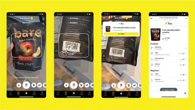 Пользователю приложения нужно навести камеру на штрих-код, и Snapchat расскажет о составе продукта, дате изготовления, а также проанализирует, насколько он полезен для здоровья. Так же сканер работает и с вином: приложение покажет цену, рейтинг, вкусовые качества и гастрономическую совместимость.