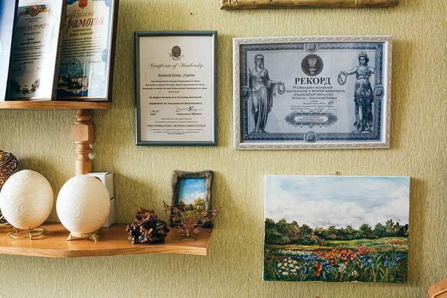 Среди важных достижений художника – ковка серебром по яичной скорлупе, обрамление металлом, а также яйца с "секретами", то есть скрытыми деталями.