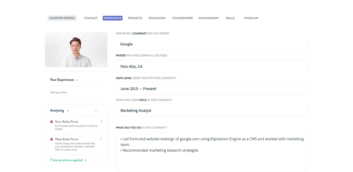 Алгоритм використовує систему відстеження кандидатів ATS – програмне забезпечення, розроблене для роботодавців. Rezi Resume враховує особисті якості та досвід, аби продемонструвати, що ви – саме той співробітник, якого шукає роботодавець.