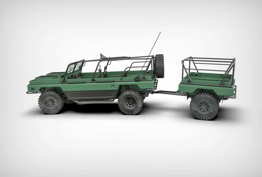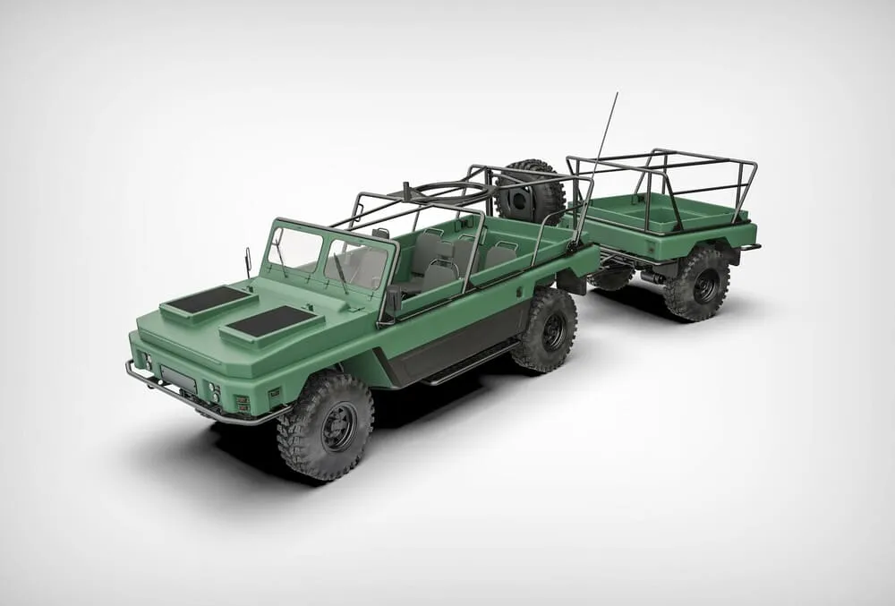 За бажання, машину можна обладнати електричними гребними гвинтами у кормі кузова. А для збільшення корисного навантаження розробники пропонують плаваючий причеп.